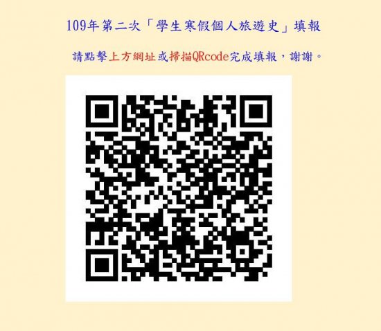 109年第二次「學生寒假個人旅遊史」填報