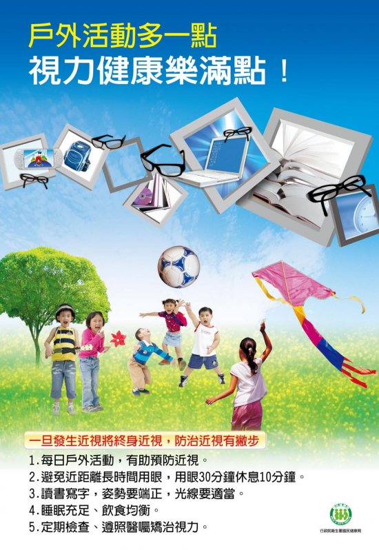 二、為培養學齡前及學齡期兒童正確用眼習慣及增加戶外活動時間,並宣導12歲以前學童掌握遠視儲備量的重要性,衛生福利部國民健康署於111年度製作「兒童近視防治資源寶典」,以淺顯易懂方式提供相關衛教資訊。另為提高議題宣導觸及性,該署另有製作海報、三折頁、30秒動畫懶人包及醫師衛教影片。