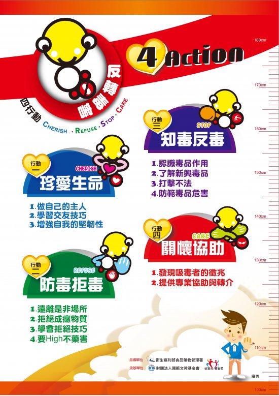 校園毒品危害防制宣導「反轉毒害四行動」,多多關心您的家人及朋友。