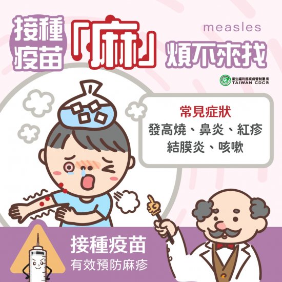 麻疹屬於急性且高傳染性的疾病,會經由空氣、飛沫、接觸病人的口鼻分泌物而感染~ 預防麻疹,接種MMR疫苗是最有效的方式!如計畫前往麻疹流行地區,出國前2至4周可先就醫評估自費接種MMR疫苗。返國有疑似症狀,應儘速就醫,並主動告知旅遊史!