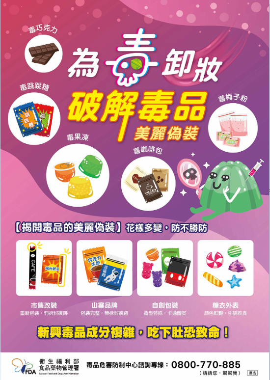 校園毒品危害防制宣導「為毒卸妝、破解毒品」,遠離各式毒品,關心身邊的人。