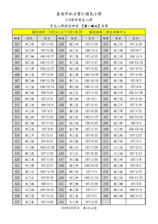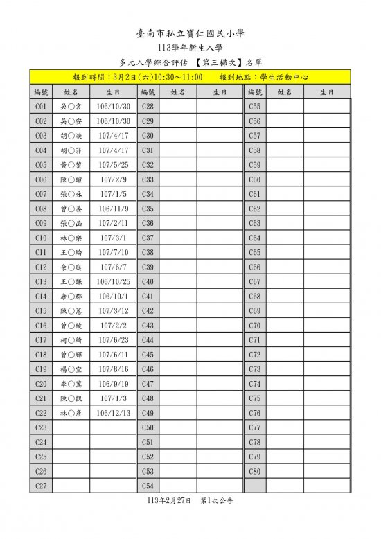 2.於3/1日下午三點截止報名後整理最終資料,整理完後公告最終確定名冊。