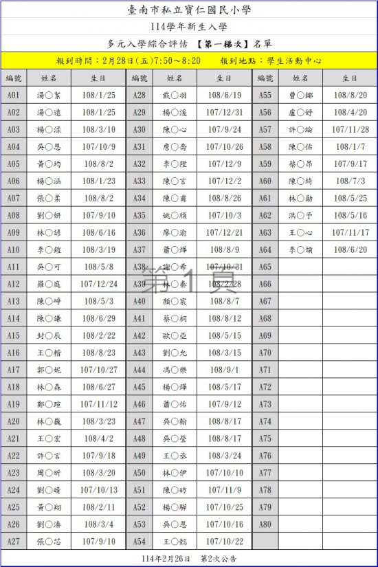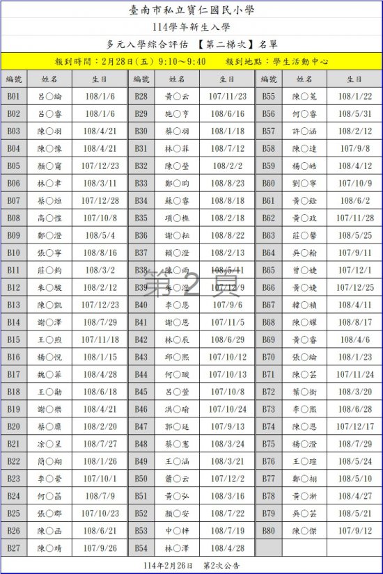 114學年新生多元評估名單與報到梯次表如附檔