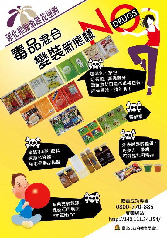 校園毒品宣導---毒品沒有毒性輕重的區別,都會傷害使用者的身心健康,千萬不要踏出錯誤的第一步。 除了自己避免毒害外,也應適時伸出友誼之手關懷協助周遭親友,避免他們為毒所害。
