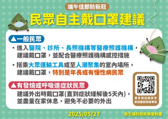 端午連假即將到來,大家是否已經安排好行程了呢? 端午節氣自古便與防範疫病有關,除了在門口掛上菖蒲艾草,或是製作香包等習俗外,適時佩戴口罩更是因應時代的防疫關鍵! 若身體有不適症狀,盡量在家休息,保障自己及親友健康~